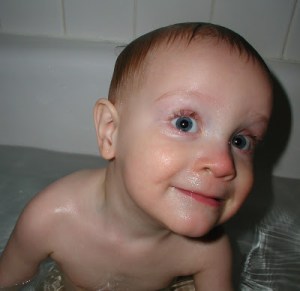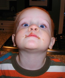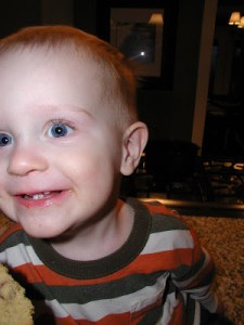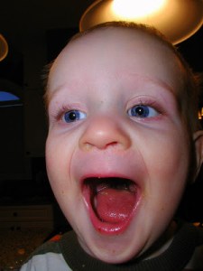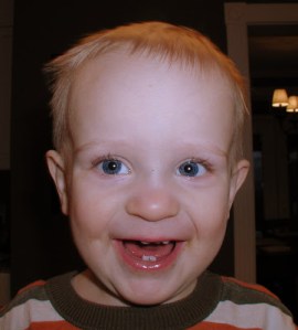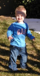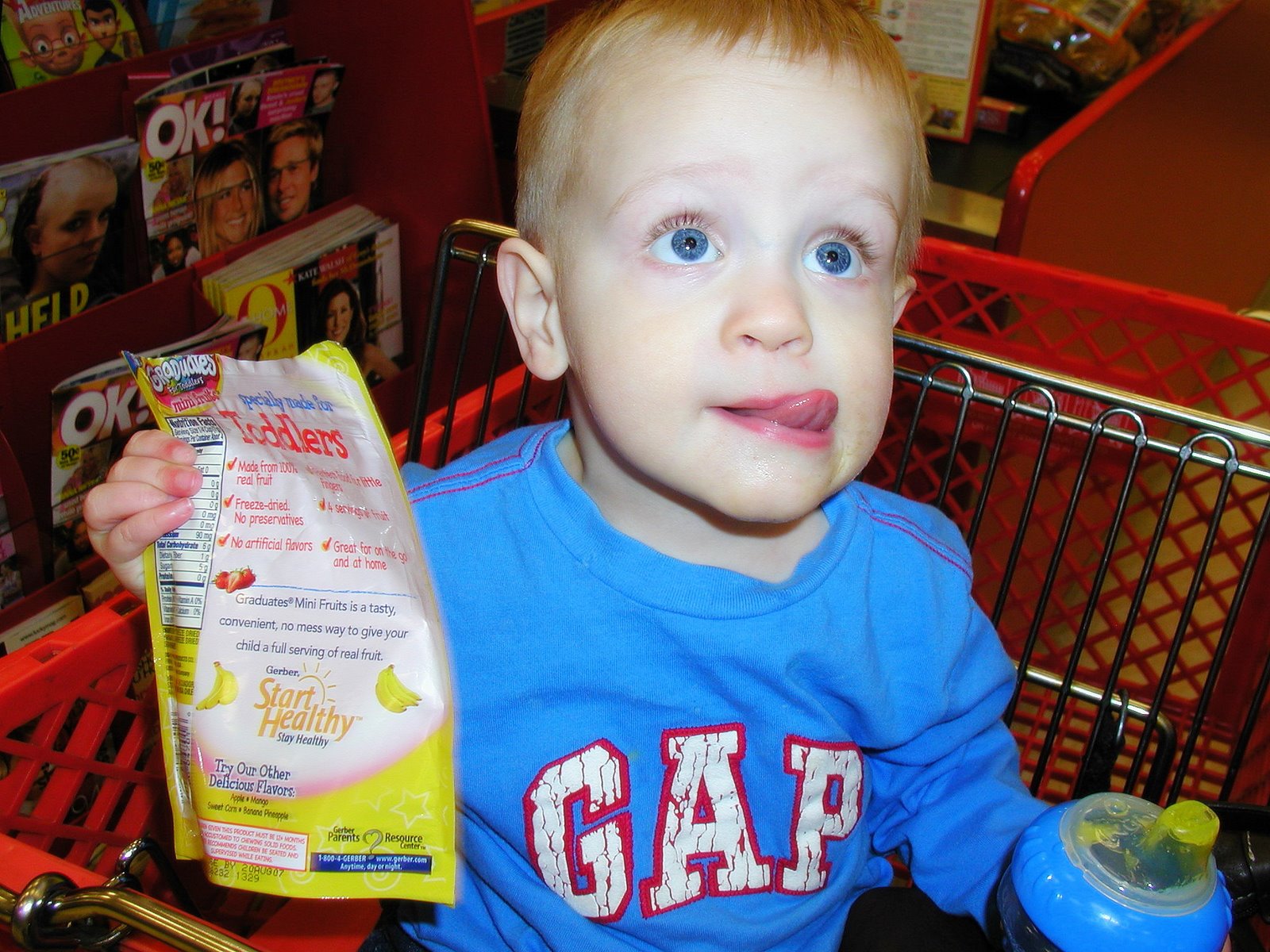 Shopping at Target with his bag of bananas and strawberries, dehydrated to dissolving perfection. Really, the reason I include this picture is to document the “Andersen tongue”, a phenomenon that occurs upon intense concentration. He hasn’t yet perfected it, as this is not a moment of intense concentration, but I’m pretty sure he was focused on a little bat that Sarah was waving around in an effort to get him to look at me so I could take a picture.