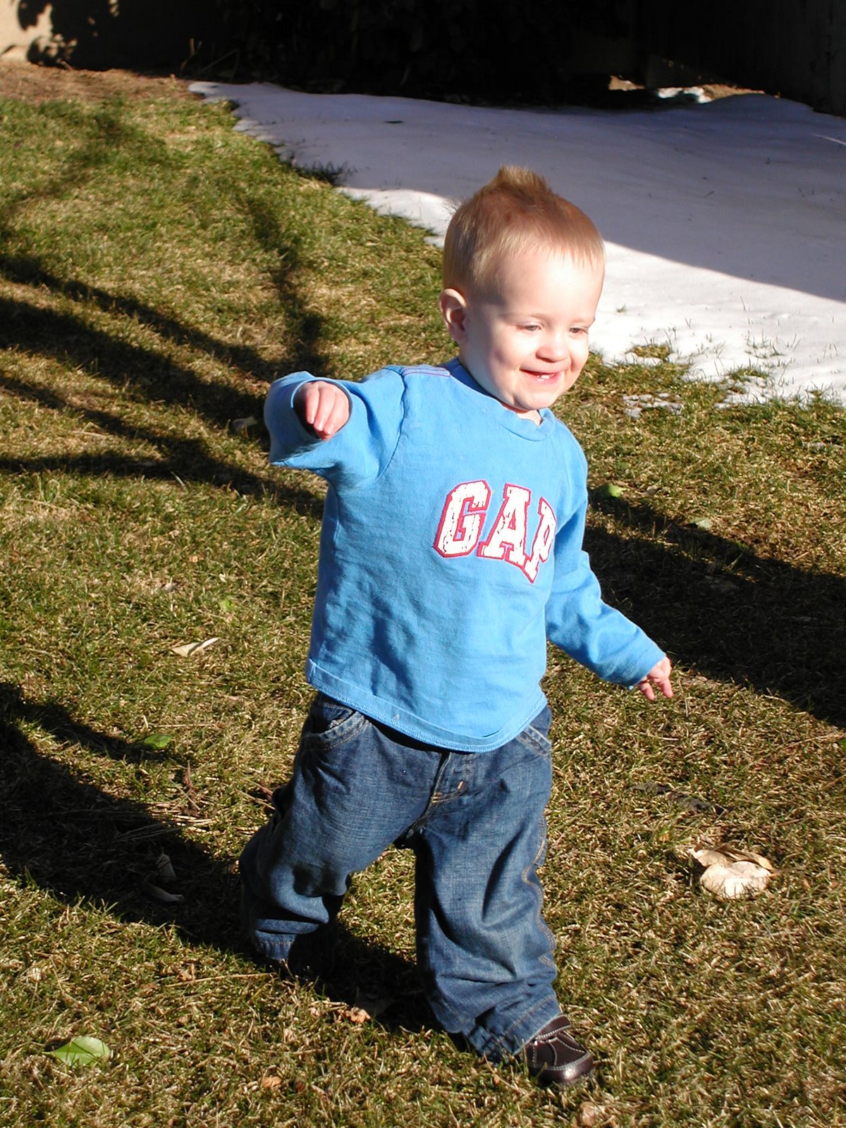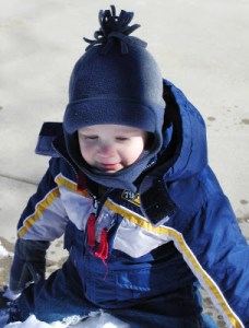 And he found a mound of snow to sit on…he seriously navigated it for about a minute before finally managing to sit down. It was so funny to watch. Toddlers really are like toys for grownups. The only problem is that you have to feed them and change their diapers.