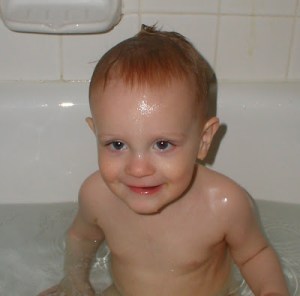 Time to clean up after all of the fun. He loves his bath. I had to finally just drain it to get him out.