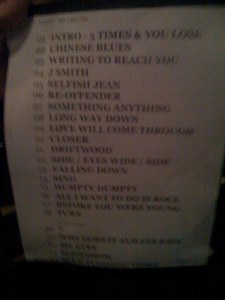 The concert was FANTASTIC!!! They played all of my favorites: Closer (if you watch this video on YouTube, the checker is Dougie Payne, the bassist, who is so ridiculously hot in person I could hardly stand it…and it’s not so much how he looks as how he acts: HOT!), Driftwood,