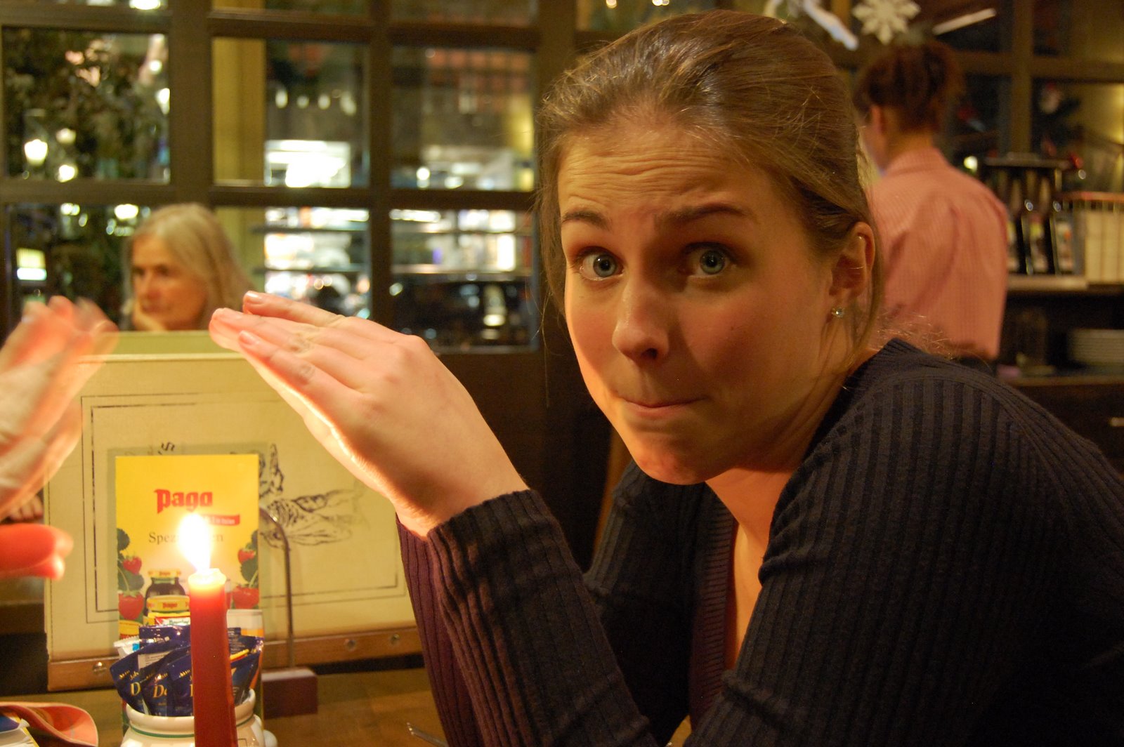 And then there were the waffles. I wish I had taken a picture of Pierre (the owner) pulling the dough off the parchment and putting it into the waffle iron so you could all see what I’m talking about. But I didn’t. I did, however, capture the end result…a delicious Liege waffle. (Belgians do make batter waffles, too…but the dough ones originated in Liège, which happens to be the province where I was living in high school.)