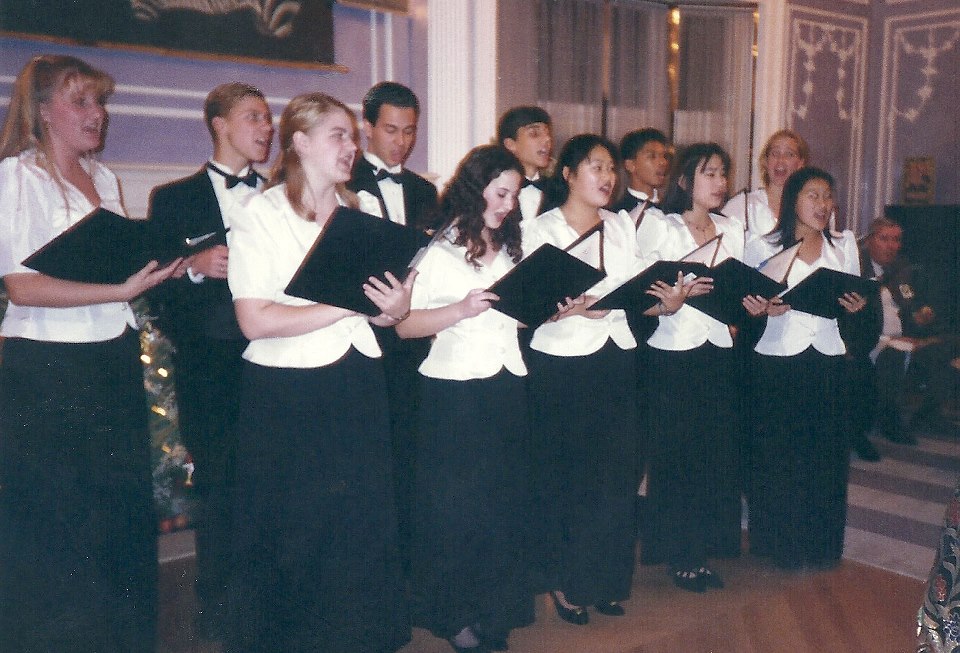 Incidentally, my mom’s last Christmas was the Christmas of my freshman year of college. She had not been feeling well, but it was so important to her that we came home to a decorated house. She actually hired my friend Wendy (far right) to help her get everything done before my sister and I got home from college. The night before we got home, she’d been making sure everything looked perfect, so she lit all of the candles. Well, she forgot about one of them and ended up scorching a little ledge and baluster in our living room. Kind of a classic Kim thing to do.